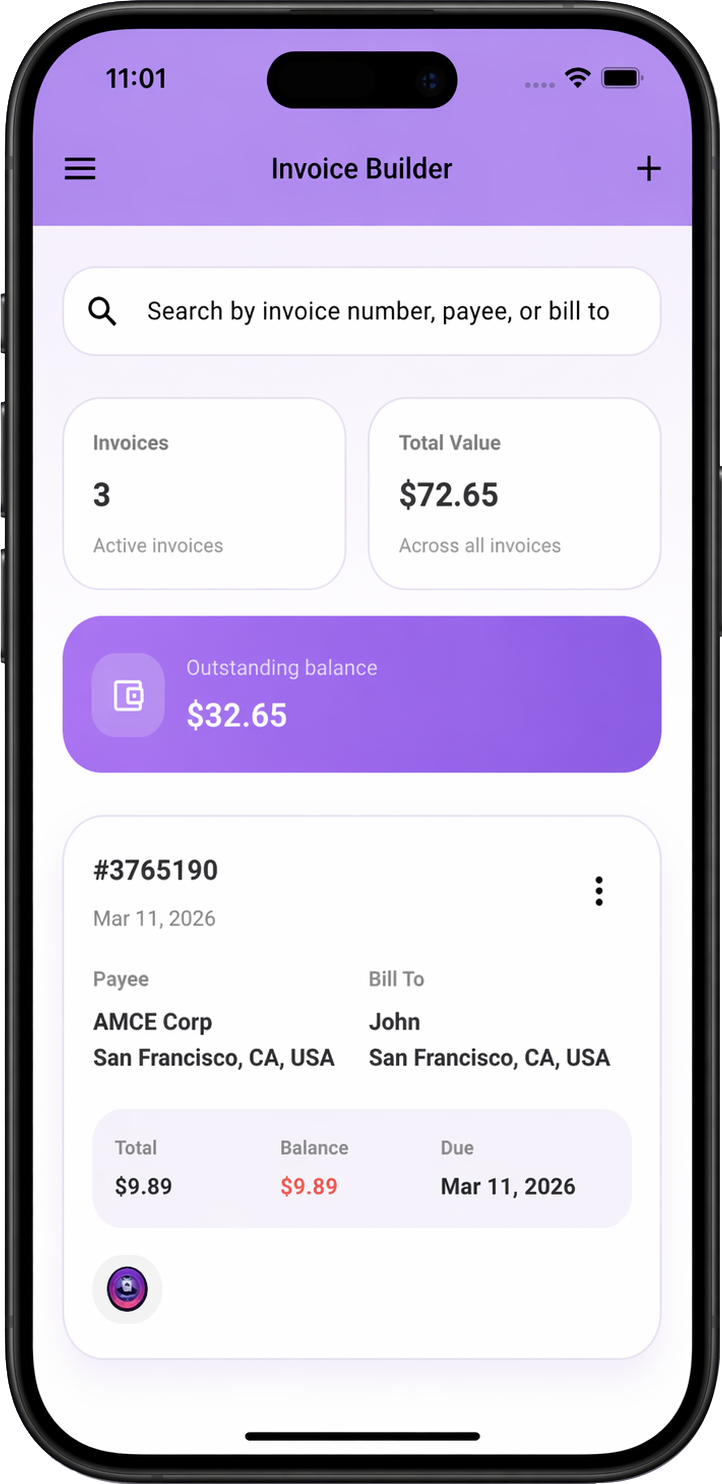 A focused mobile invoicing experience for people who want speed, clarity, and a professional finish.